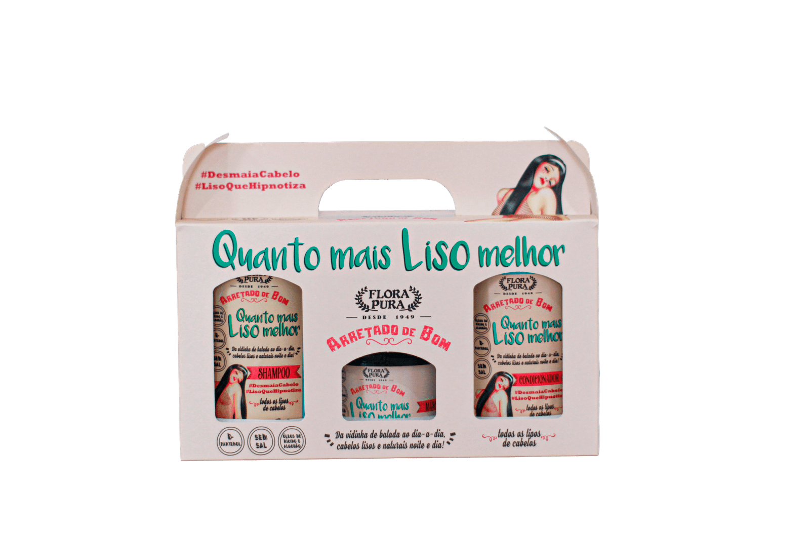 O Kit Arretado de Bom Quanto Mais Liso Melhor, da Flora Pura, é pensado para quem deseja um efeito liso controlado e elegante.